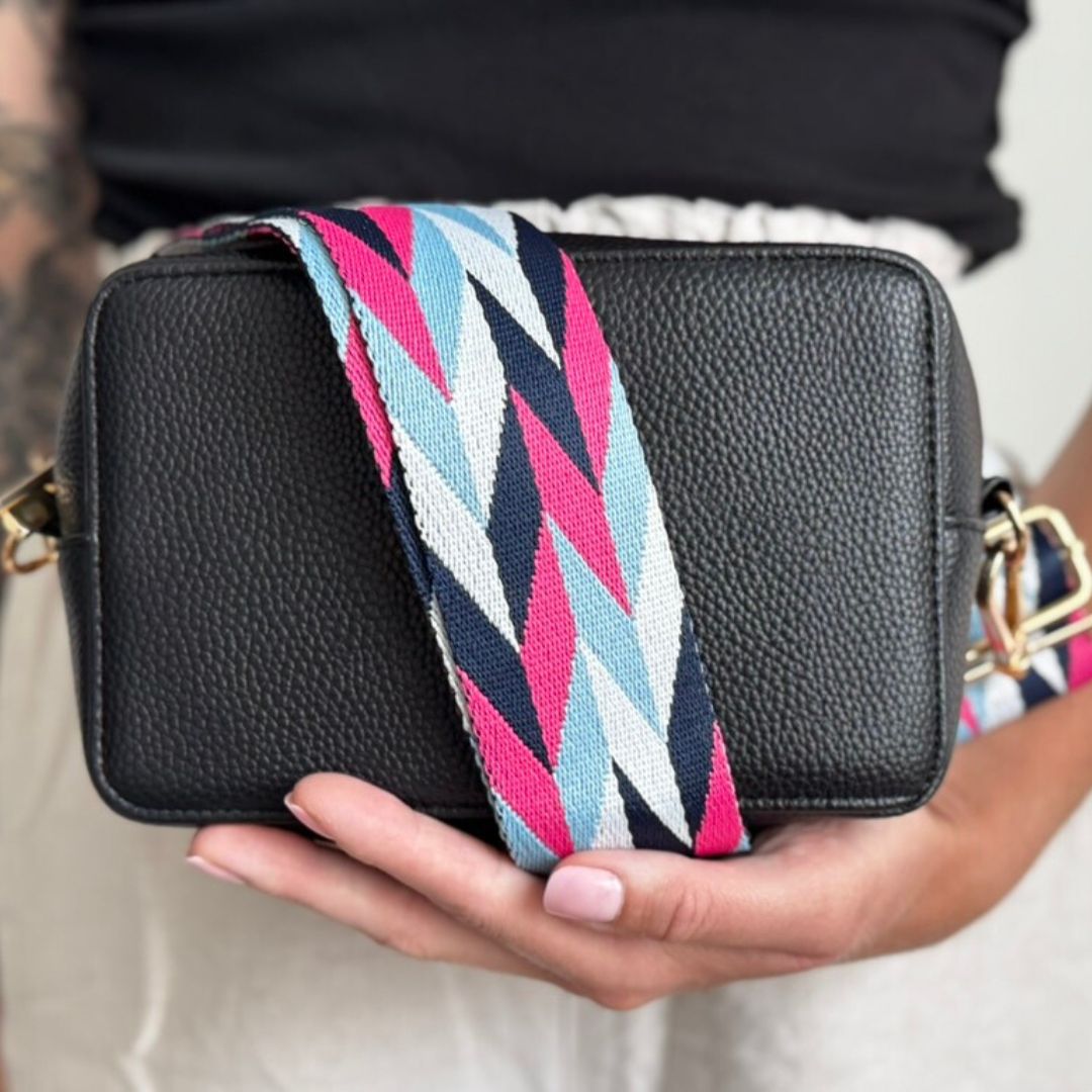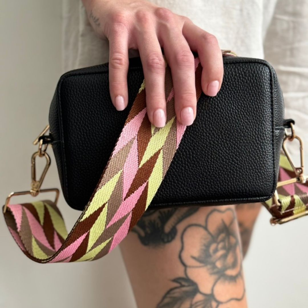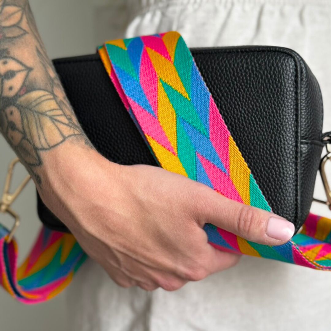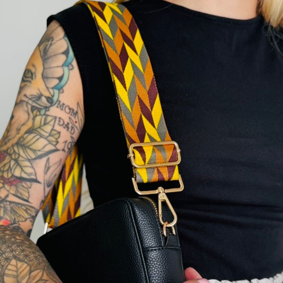 Bring Farbe in deinen Look: Dieser Taschengurt mit Zickzack-Design setzt ein klares Fashion-Statement.